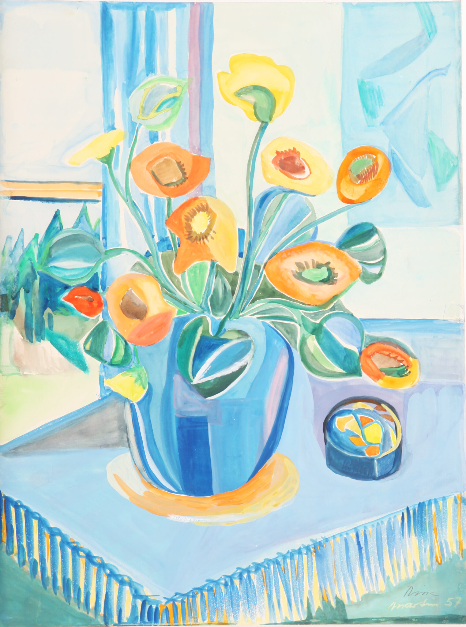 Signiert „martin“ (Karin Martin/Mädchenname von Rissa) und „Rissa (später) und datiert vorne unten rechts. Rückseitig signiert „Rissa“ (später) und datiert sowie betitelt.