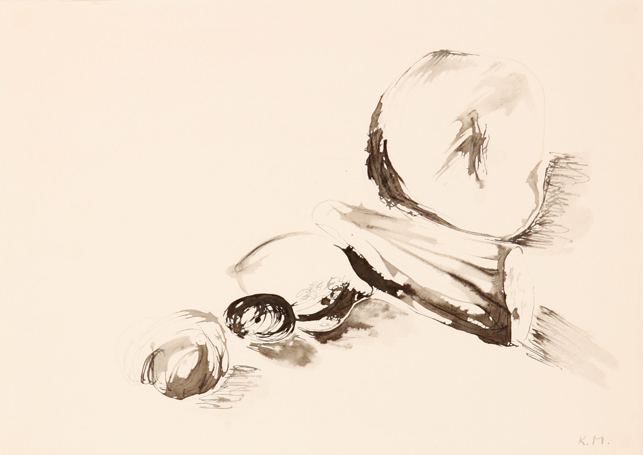 Signiert „K.M.“ (Karin Martin/Mädchenname von Rissa) vorne unten rechts. Rückseitig auf dem Unterlagekarton datiert.
